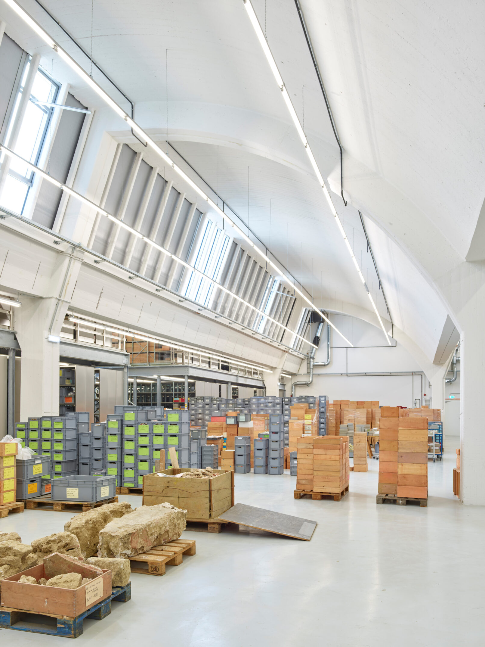 Auf rund 4.000 m² einer alter Fabrikhalle ist das neue Archäologisches Zentraldepot der Stadt Augsburg mit Büros, Werkstätten, Magazinen und Veranstaltungsräumen untergebracht.