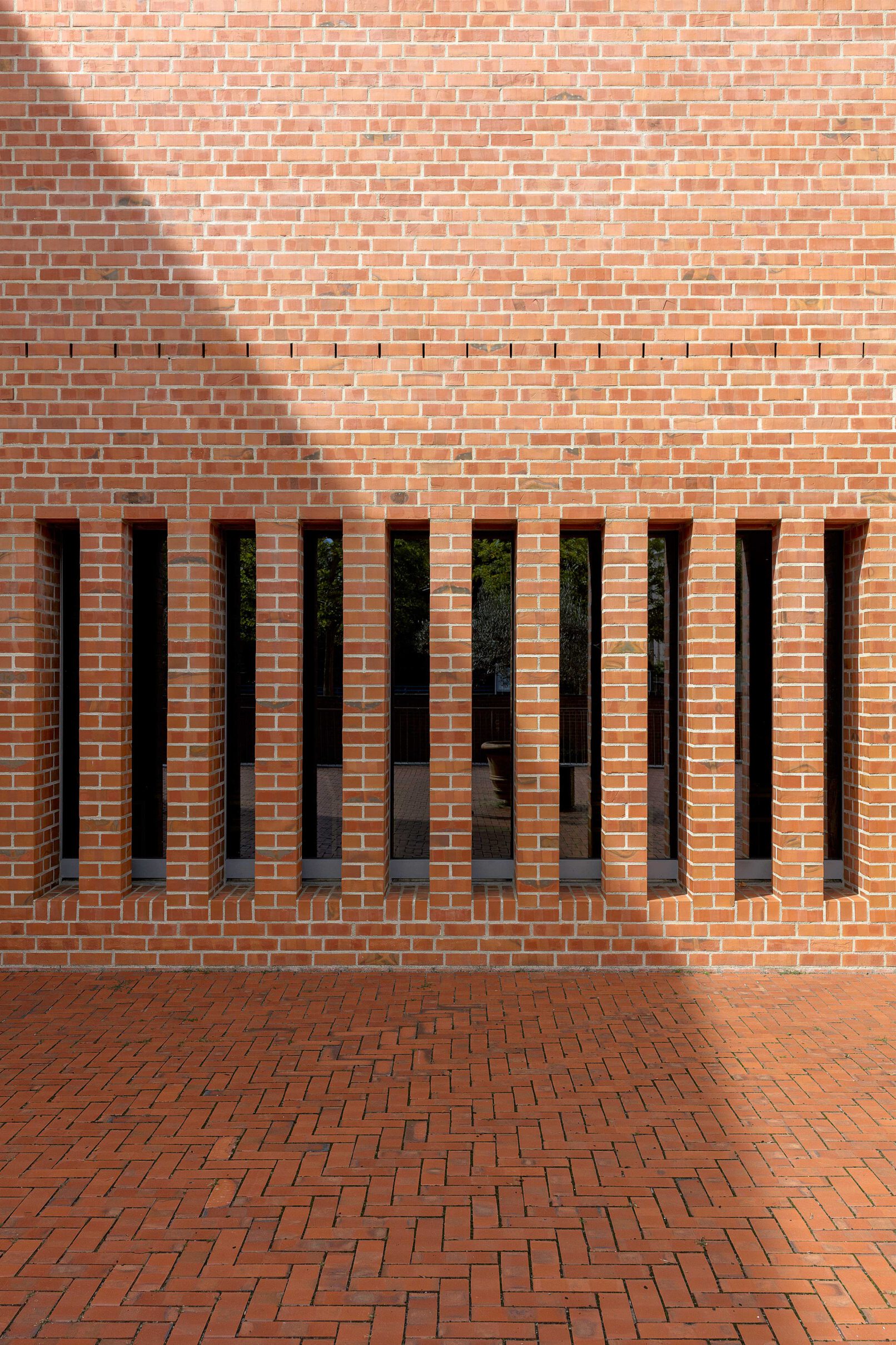 Schon über 10 Jahre alt und trotzdem wahrt das Gebäude, vor allem durch die witterungsbeständige Klinkerfassade den Anschein von Jungfräulichkeit. Zusätzlich fördert die zeitlos moderne Architektur diesen Anschein. Zigarettenstummel die sich im Klinkerboden eingenistet haben, sind die einzigsten Gebrauchsspuren die das Bauwerk aufweist – diese wurden fein säuberlich entfernt.