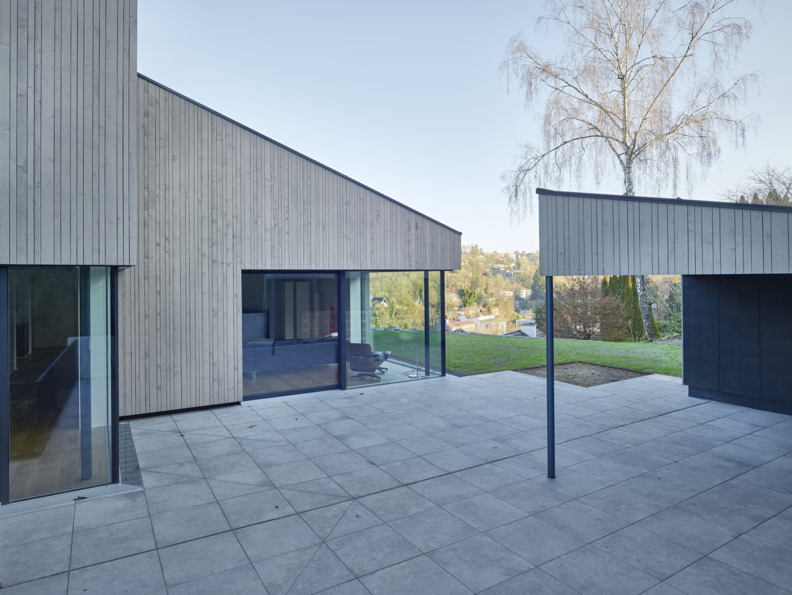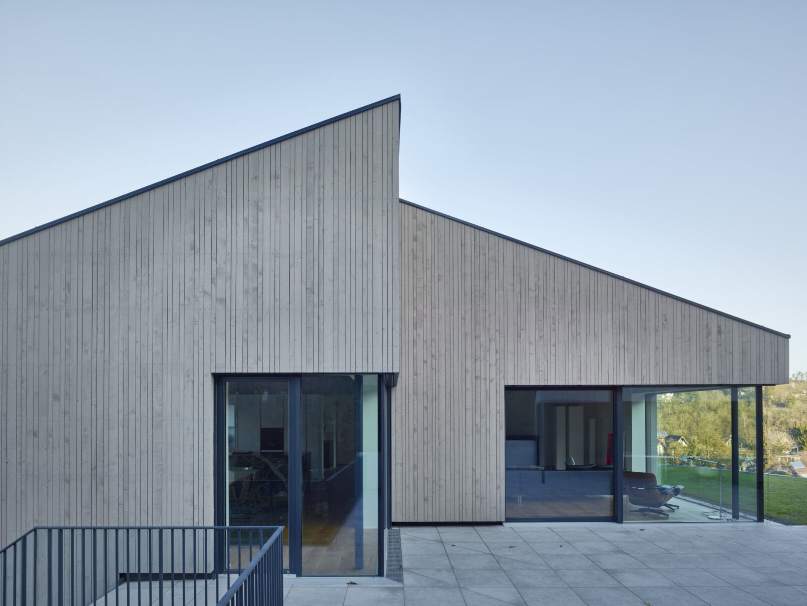 Man möchte es kaum für möglich halten, aber bei diesem Wohnhaus handelt es sich um die Sanierung eines Bestandsgebäudes. Mit kleinen Eingriffen in die Substanz haben Bauherren und Architekt eine regelrechte Transformation des Gebäudes erwirkt. Die Bedienungen hierfür waren gut, einmal durch den Standort des alten Hauses auf der Hügelkuppe mit entsprechenden Sichtachsen in die Umgebung und mit den Bauherren selbst, die schon bei der Erstbegehung folgende Haltung hatten: „Kann man daraus was machen?“
