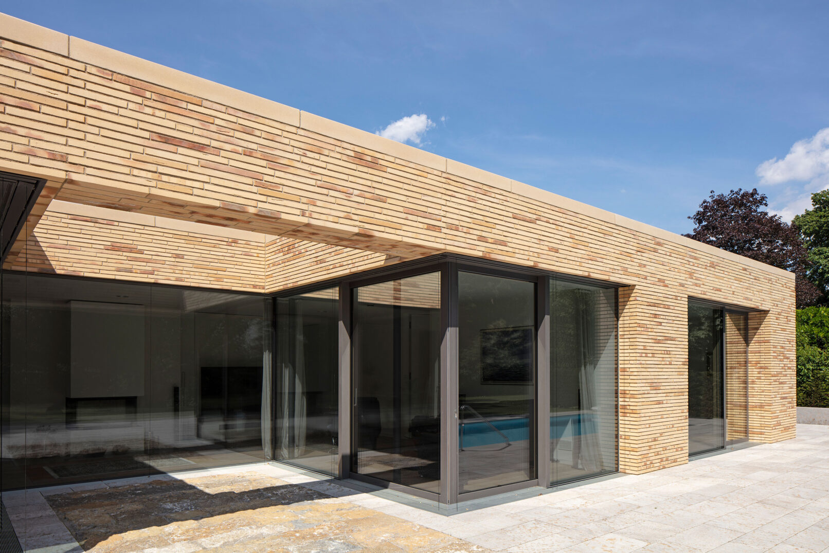 Das moderne Einfamilienhaus im niederbayrischen Altdorf bei Landshut führt eindrücklich vor Augen, dass der traditionelle Baustoff Klinker längst in der zeitgenössischen Architektur angekommen ist: Die Architekten Neumeister & Paringer haben einen dezenten eingeschossigen Baukörper entworfen, der sowohl durch seine harmonische Fassadengestaltung als auch seine Offenheit besticht. Der helle GIMA-Klinker verleiht dem modernen Solitär eine zeitgemäße Ästhetik, die Schlichtheit und Natürlichkeit ausstrahlt.
