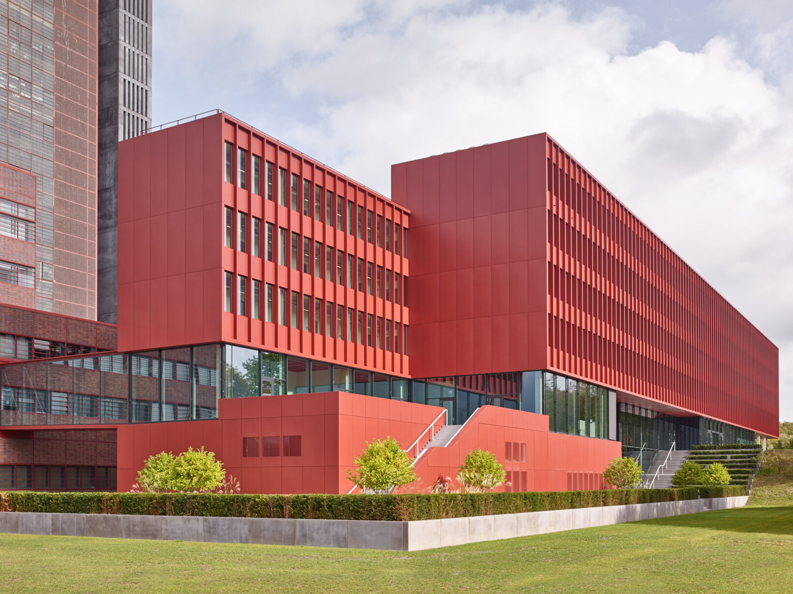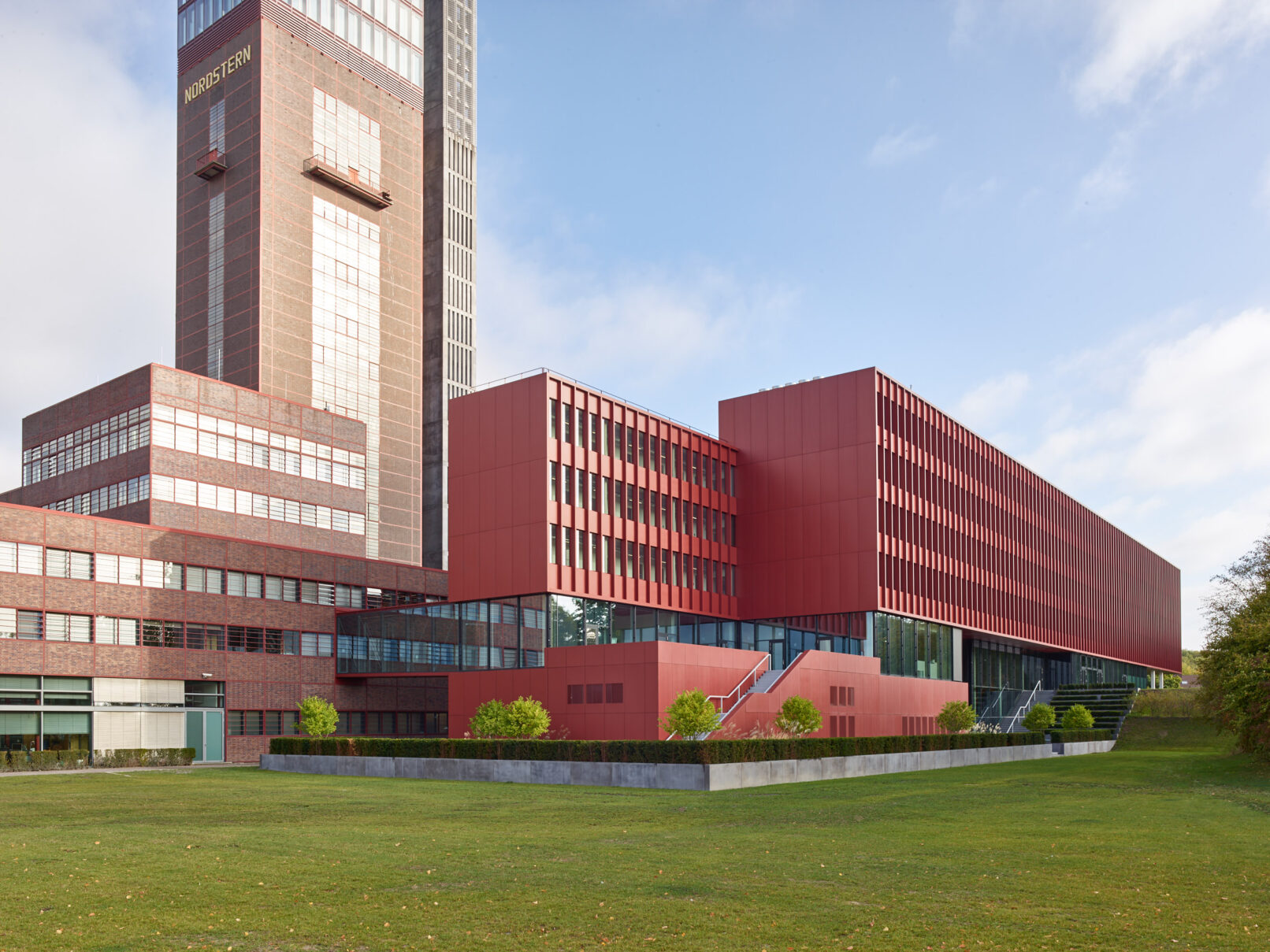 Das neue VIVAWEST Verwaltungsgebäude wurde auf dem ehemaligen Gelände der Zeche Nordstern (Gelsenkirchen) errichtet. Dabei ließen sich die JSWD Architekten vom Bergbau und der Zeche inspirieren.