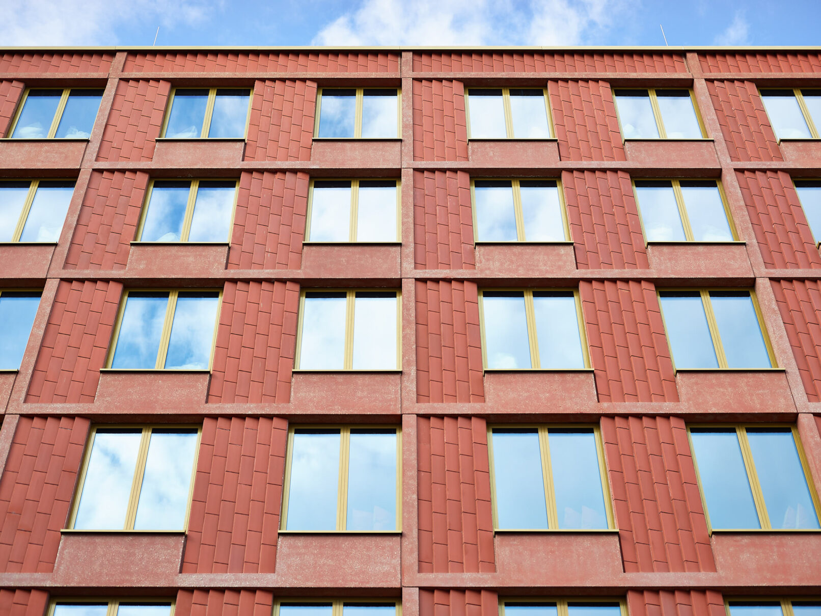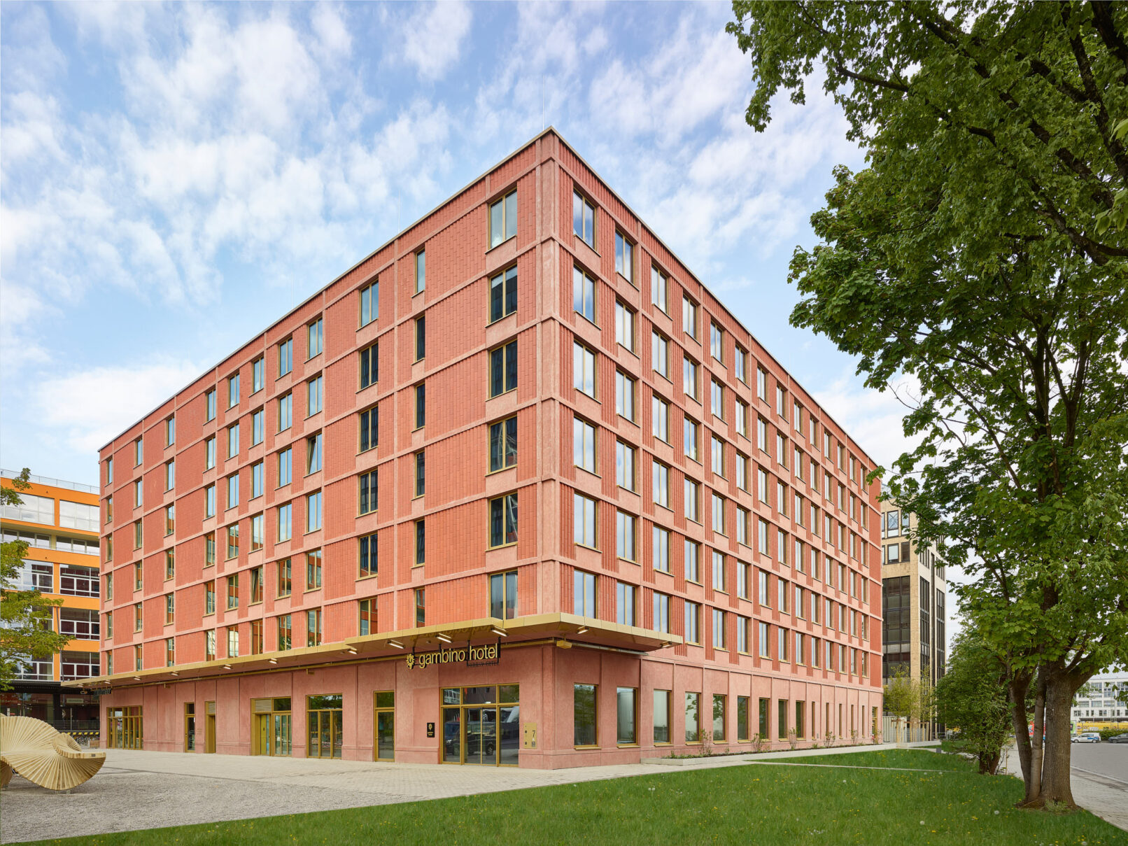 In direkter Nachbarschaft zum zukünftigen Konzerthaus ist der Hotelneubau „Werk 17“ entstanden, der vor allem durch seine hochwertige Fassadengestaltung überzeugt. Charakteristisch ist die Komposition aus einer Betonfassade mit eingelegten Ziegelplatten von GIMA, durch die sich das Gebäude optisch in das spannende Stadtquartier Werksviertel einfügt.